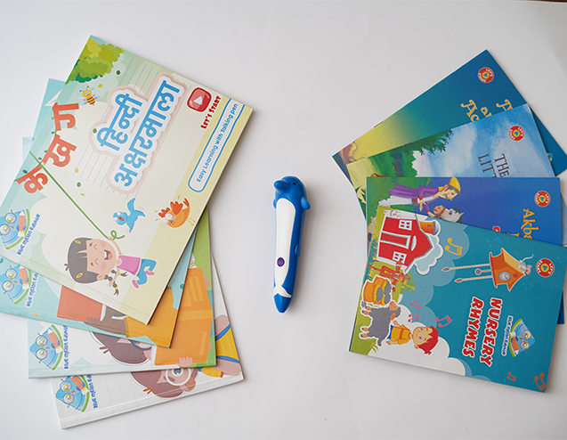 Our Talking Tutor Kit is designed to foster educational growth without the need for screens like television or mobile phones. This innovative kit includes a variety of educational books and a specially designed pen. Children simply pick up the pen, touch it to the content in the book, and instantly hear the corresponding word or sound.